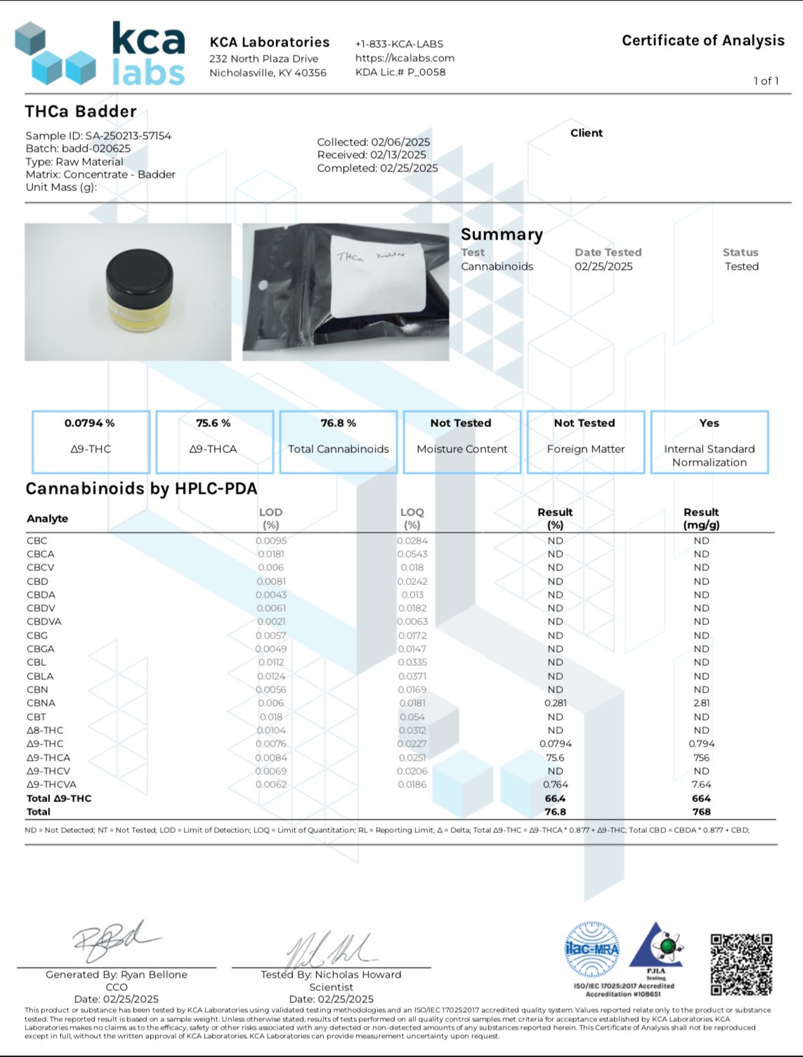 Concentrates COAs