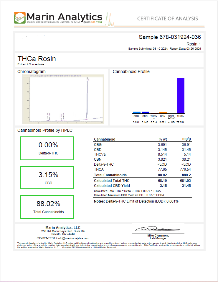 Concentrates COAs