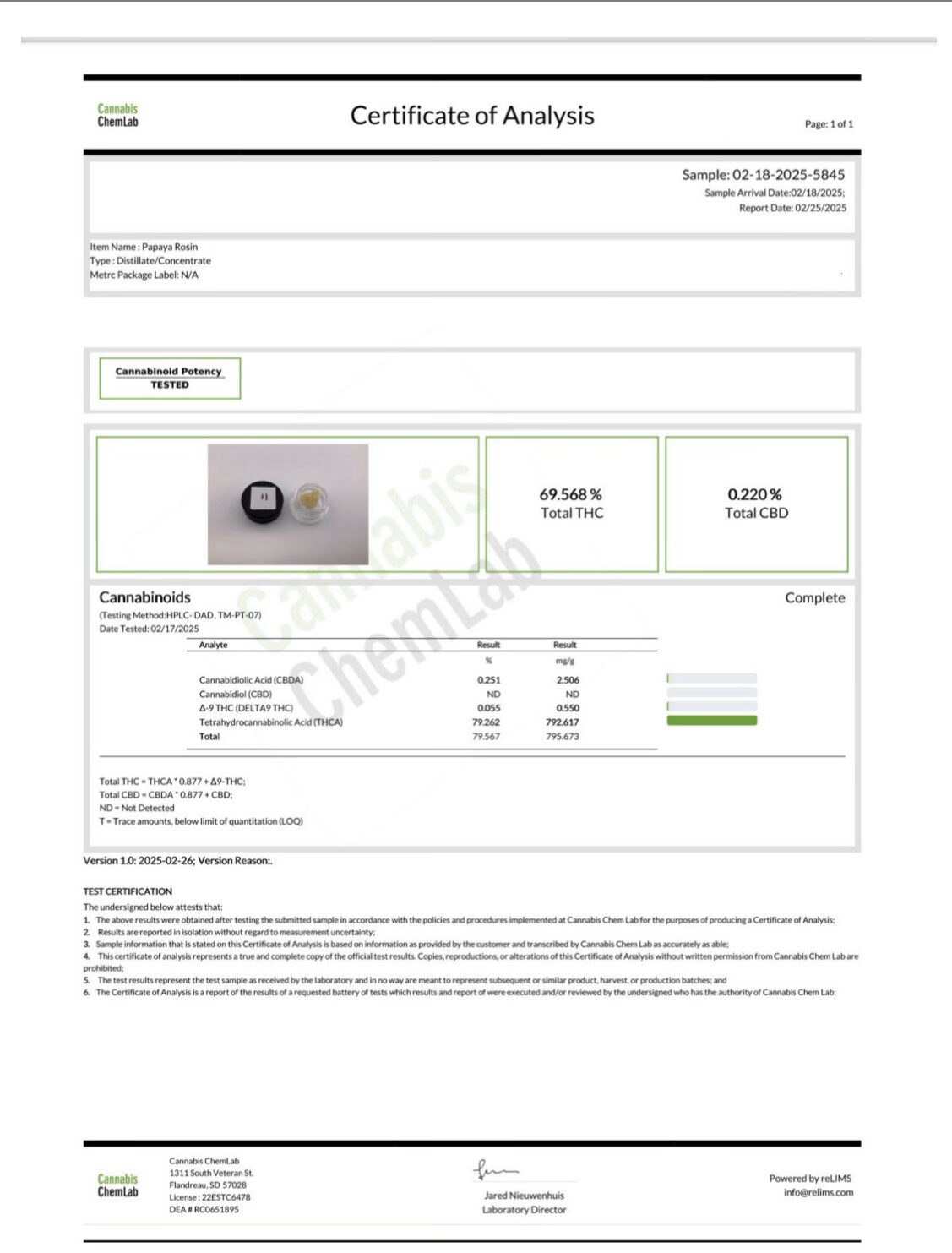 Concentrates COAs