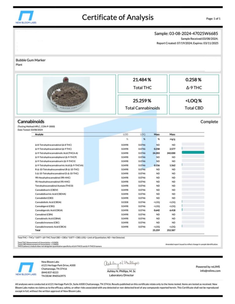 Concentrates COAs