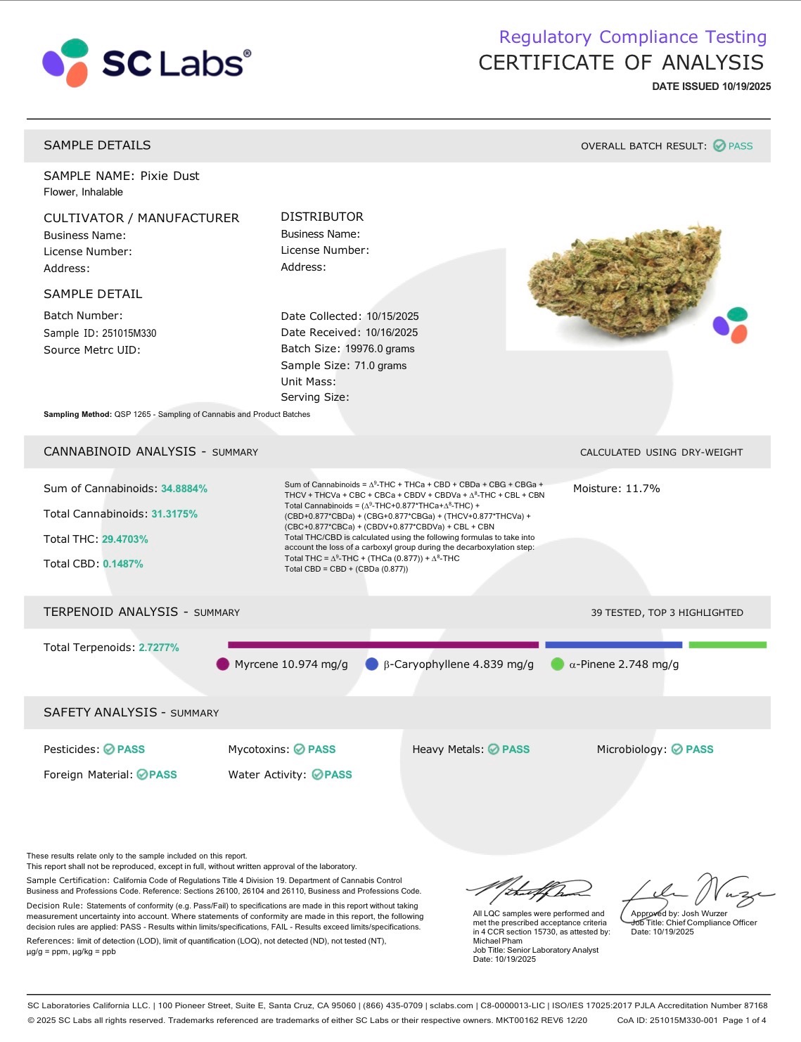 Concentrates COAs